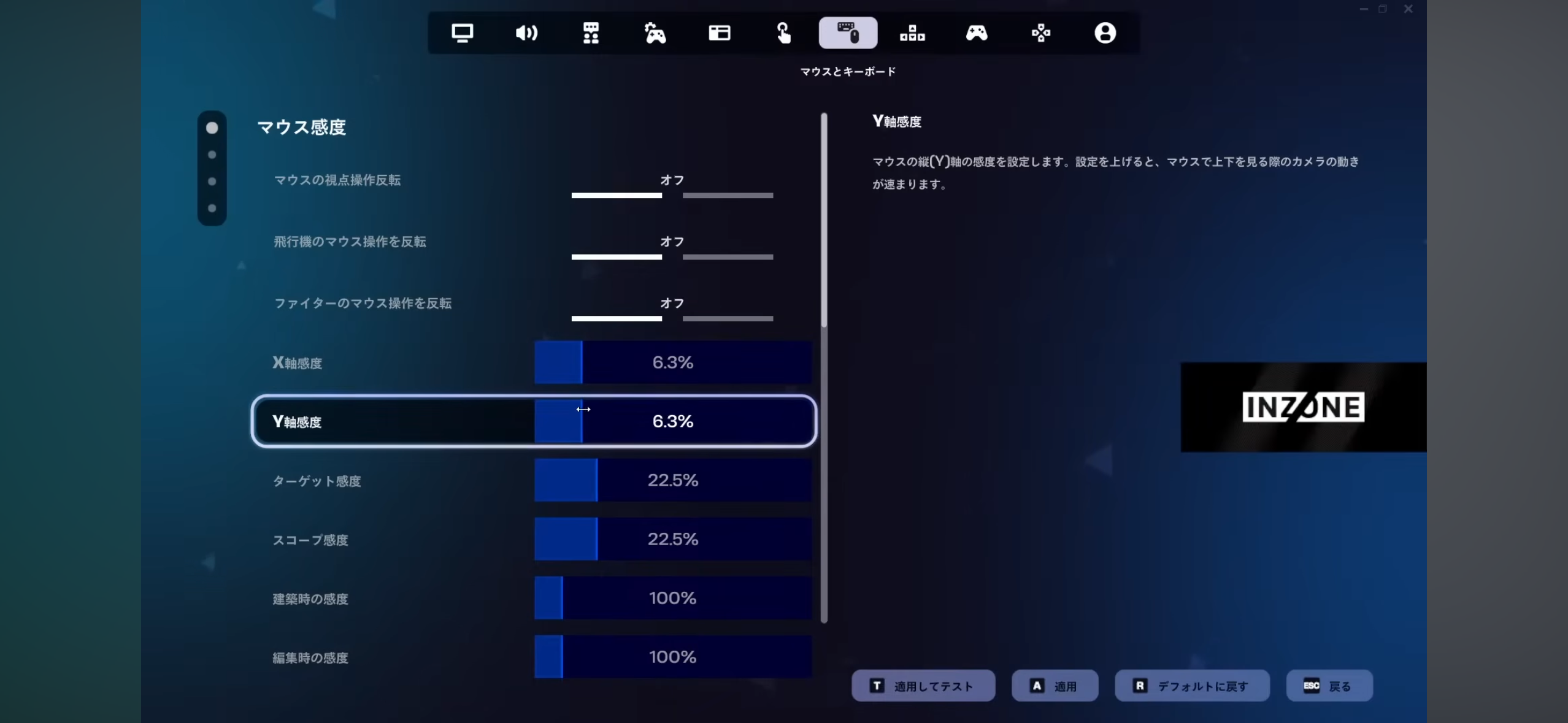 Y軸感度 6.0%