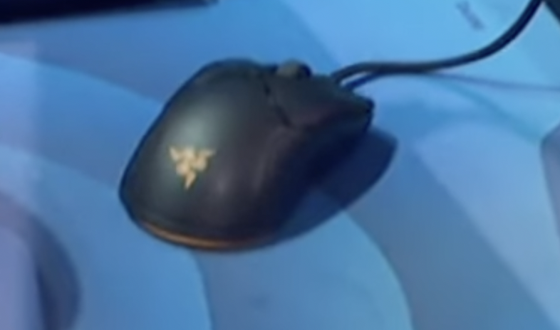 ひとまず、下記シーンでマウスバンジーの使用が見られ、「有線である可能性が高い」「RGB仕様」「Viperフォルム」これらの点から、同マウスについては「Razer Viper Mini」形状のマウスとさせていただきたいと思います。